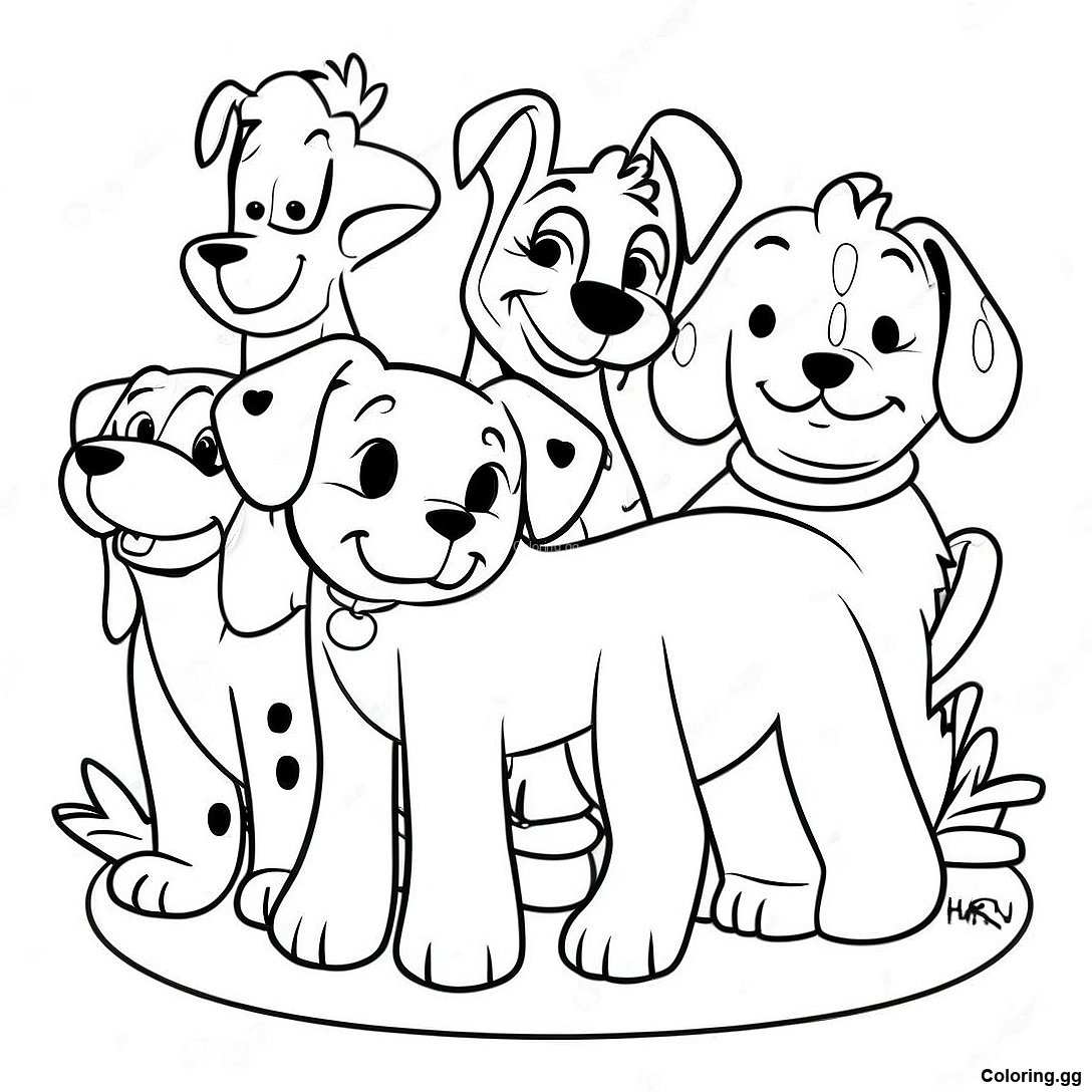 101마리 달마시안 강아지 친구들 색칠 공부의 인쇄 가능한 PDF 다운로드