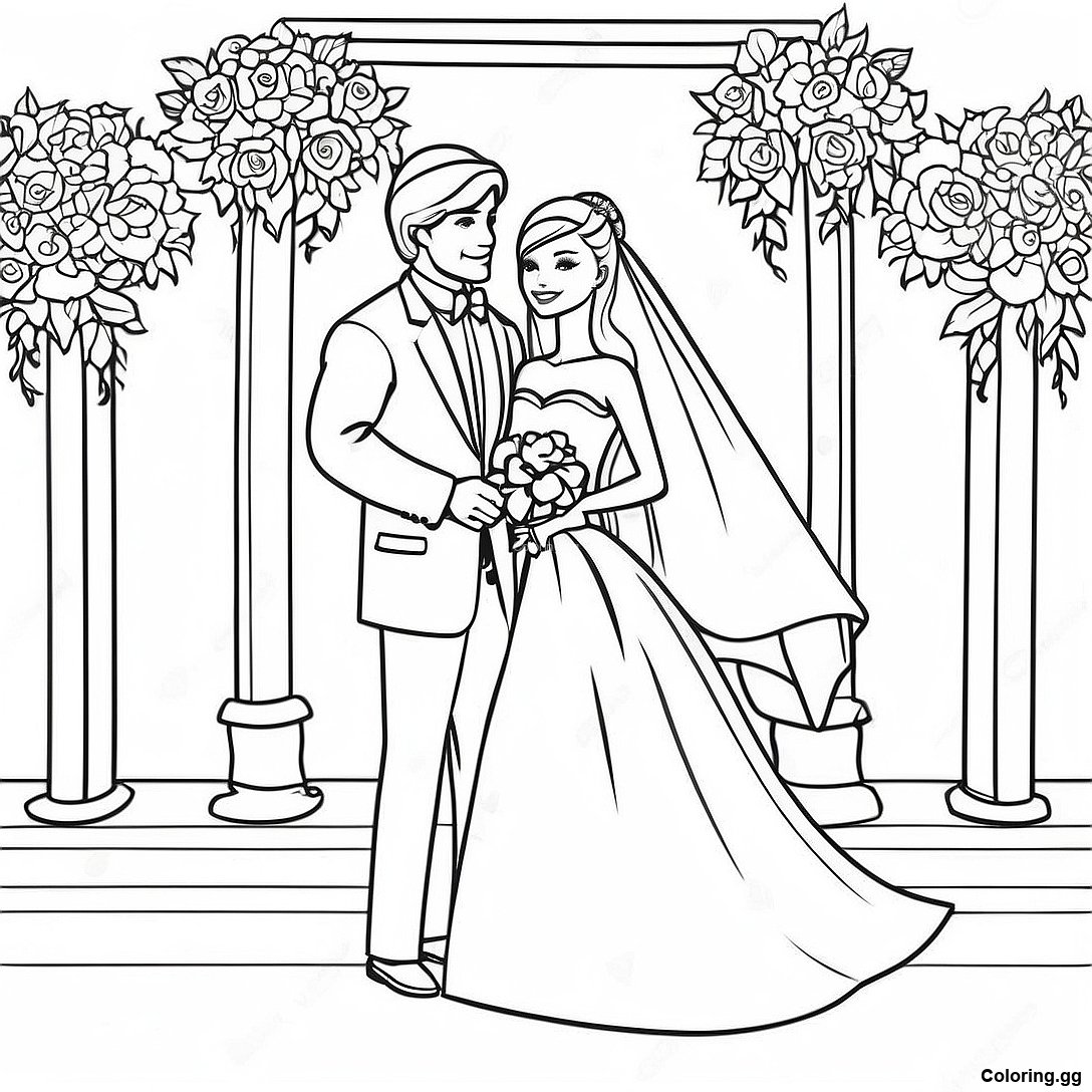 바비와 켄의 웨딩 장면 색칠 공부의 인쇄 가능한 PDF 다운로드