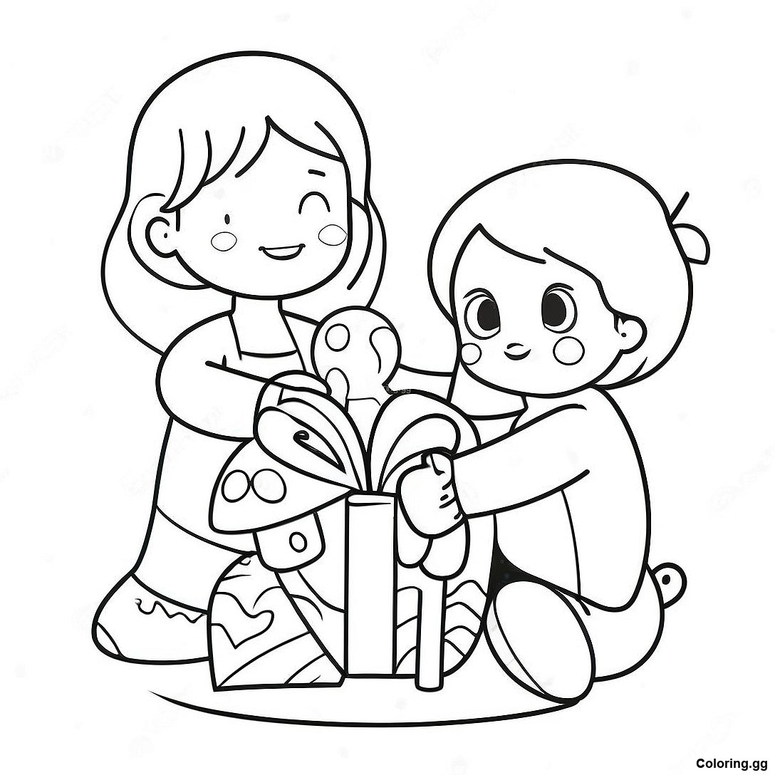 배려하는 친구들이 장난감을 나누는 색칠 공부