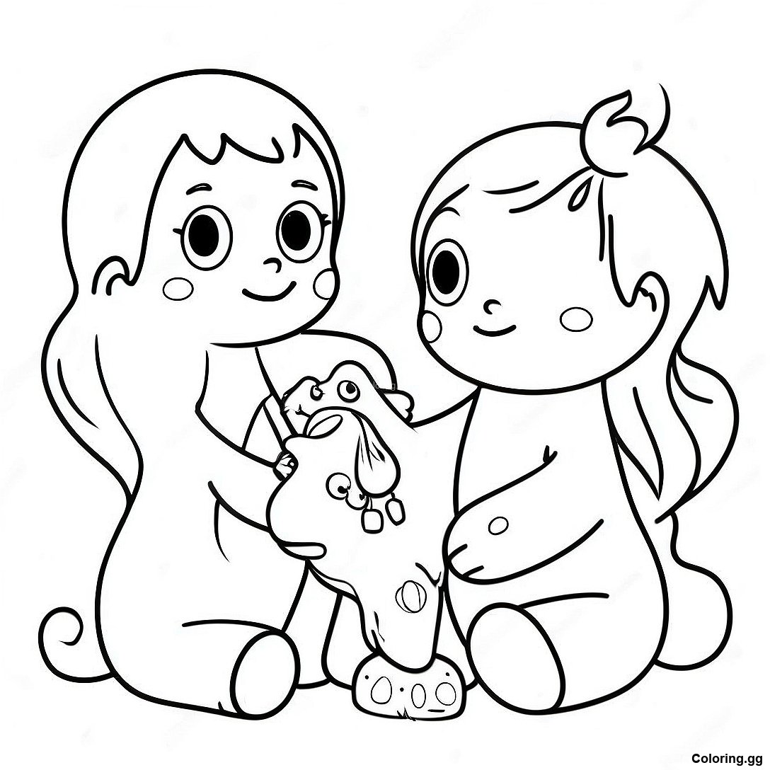 배려하는 친구들이 장난감을 나누는 색칠 공부