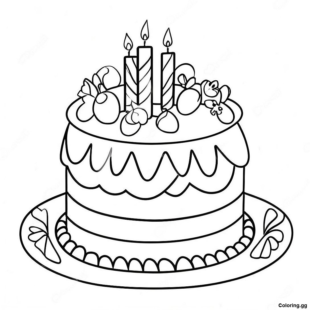 반짝이는 바비 생일 케이크 색칠 공부 페이지의 인쇄 가능한 PDF 다운로드