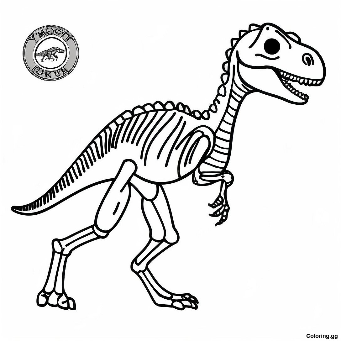 벨로시랩터 화석 골격 색칠 공부의 인쇄 가능한 PDF 다운로드