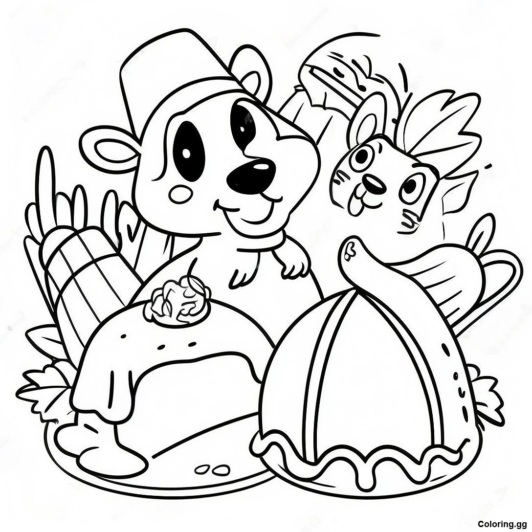 블루이 가족 추수감사절 만찬 색칠 공부 페이지의 인쇄 가능한 PDF 다운로드