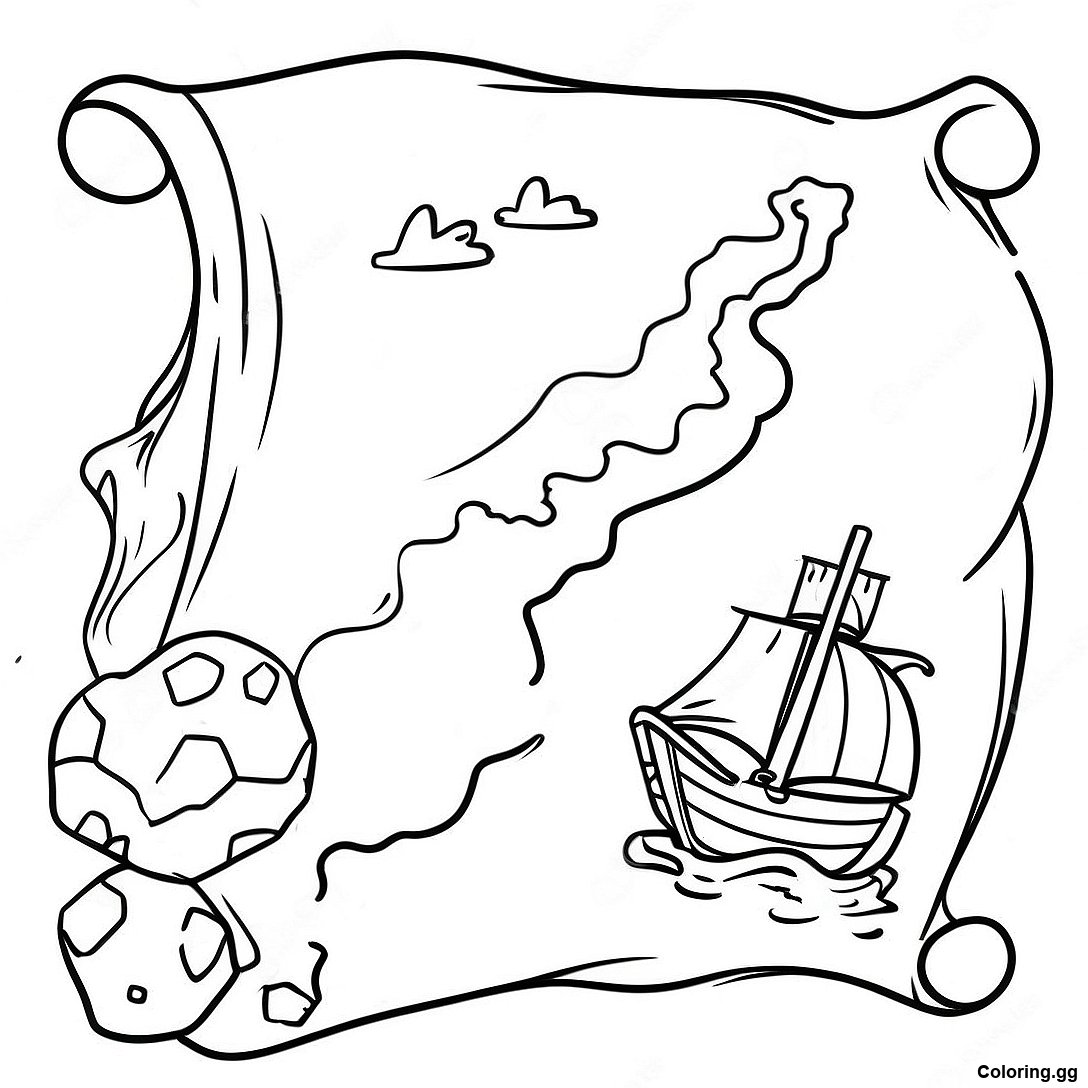 보물 지도 색칠 공부 페이지의 인쇄 가능한 PDF 다운로드