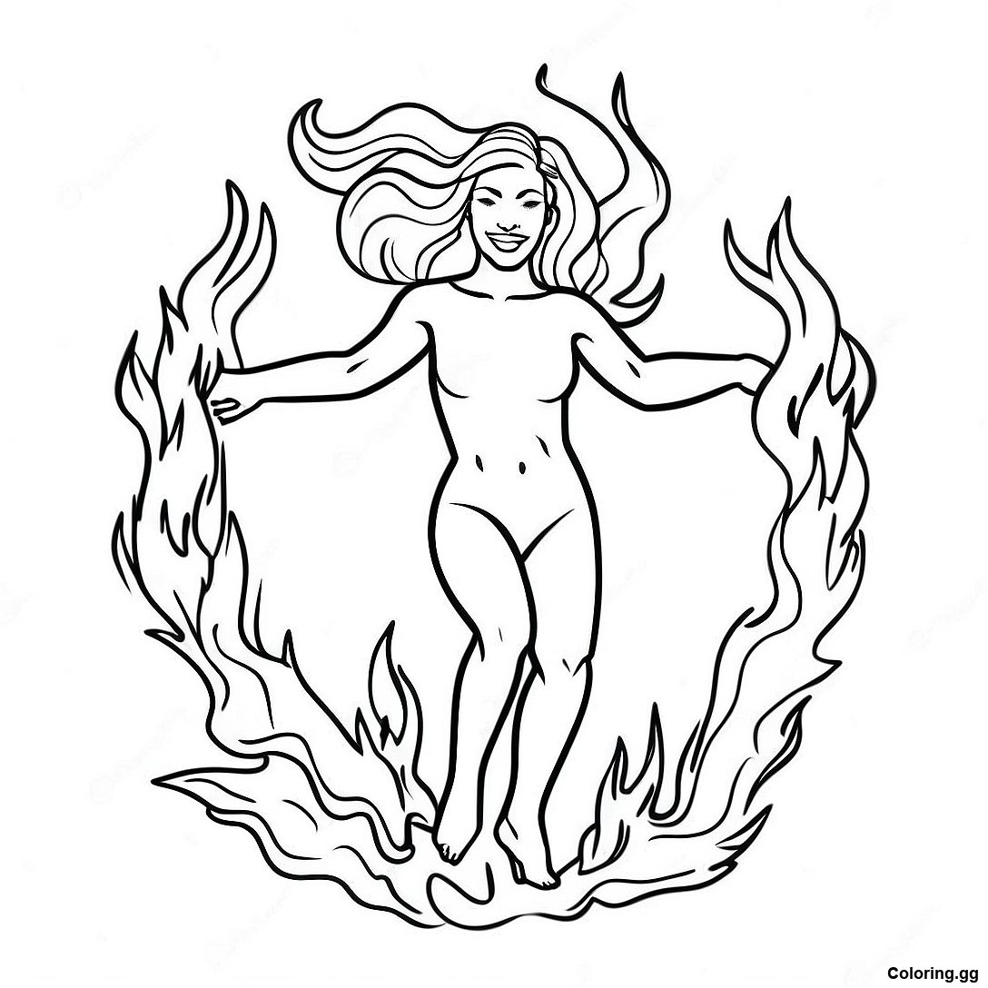 춤추는 불꽃 색칠 공부 페이지의 인쇄 가능한 PDF 다운로드