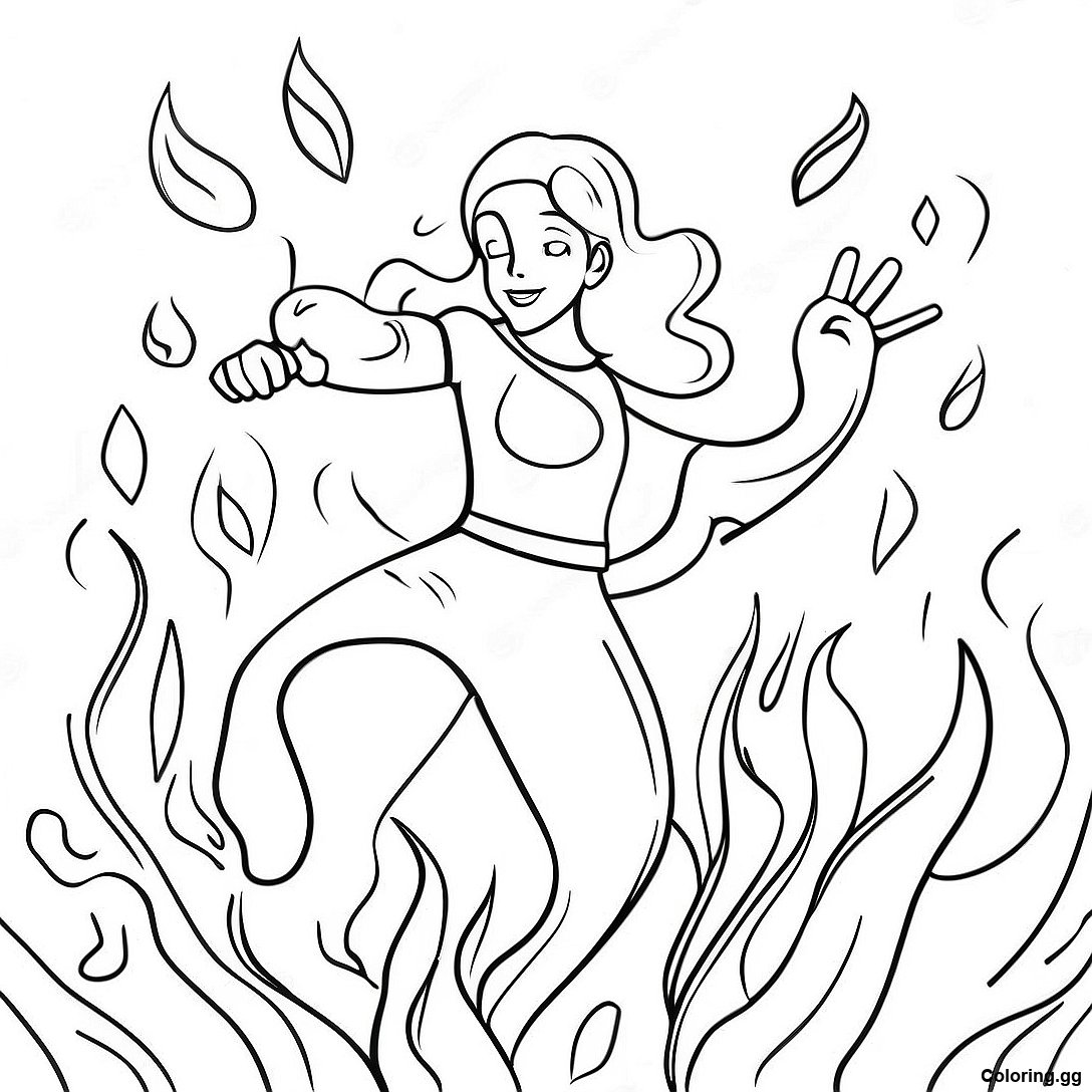 춤추는 불꽃 색칠 공부 페이지의 인쇄 가능한 PDF 다운로드