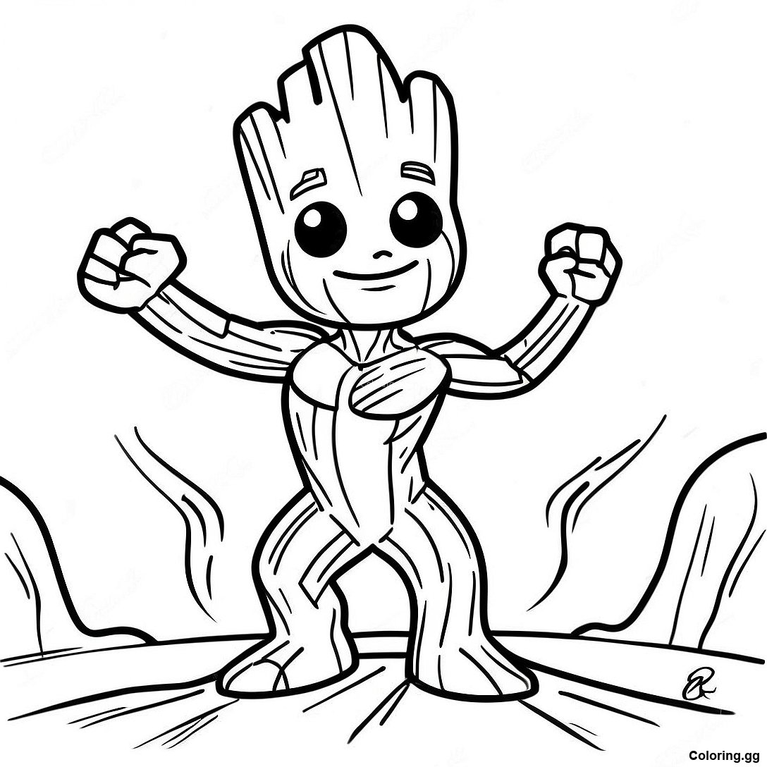 춤추는 그루트 색칠 공부 페이지의 인쇄 가능한 PDF 다운로드