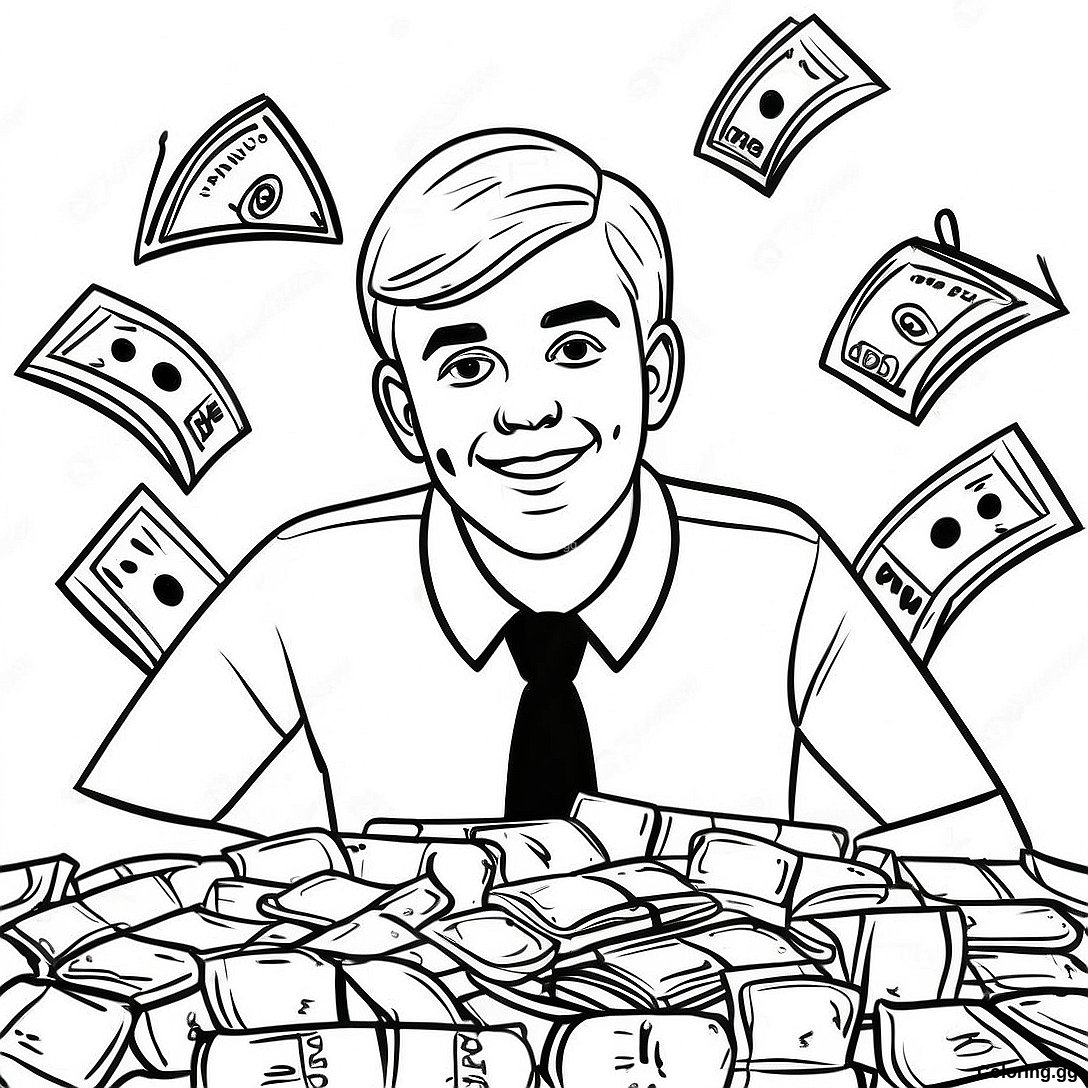 돈에 둘러싸인 미스터 비스트 색칠 공부 페이지의 인쇄 가능한 PDF 다운로드