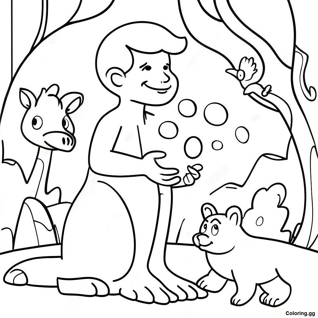 동물의 이름을 짓는 아담 색칠 공부의 인쇄 가능한 PDF 다운로드