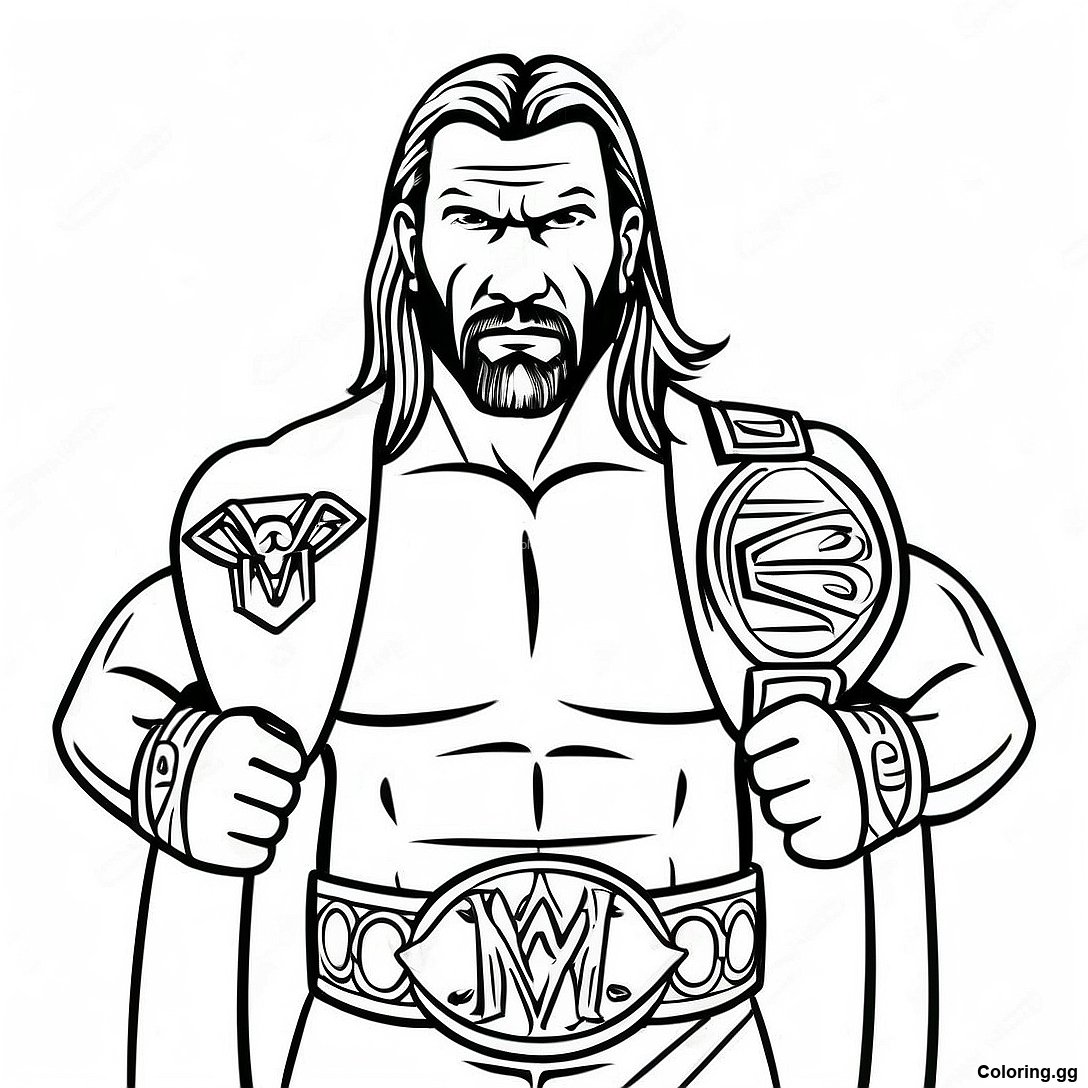 두 개의 벨트를 들고 있는 에픽 트리플 H 색칠 공부의 인쇄 가능한 PDF 다운로드