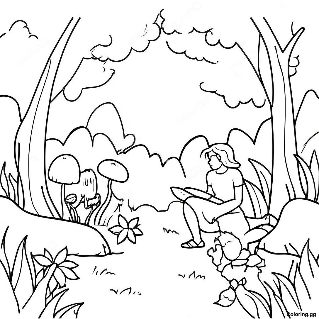 에덴 정원 장면 색칠 공부의 인쇄 가능한 PDF 다운로드