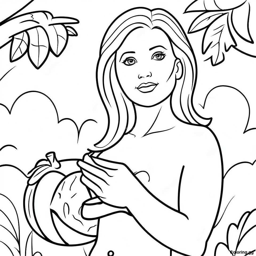 금단의 열매를 따는 이브 색칠 공부의 인쇄 가능한 PDF 다운로드