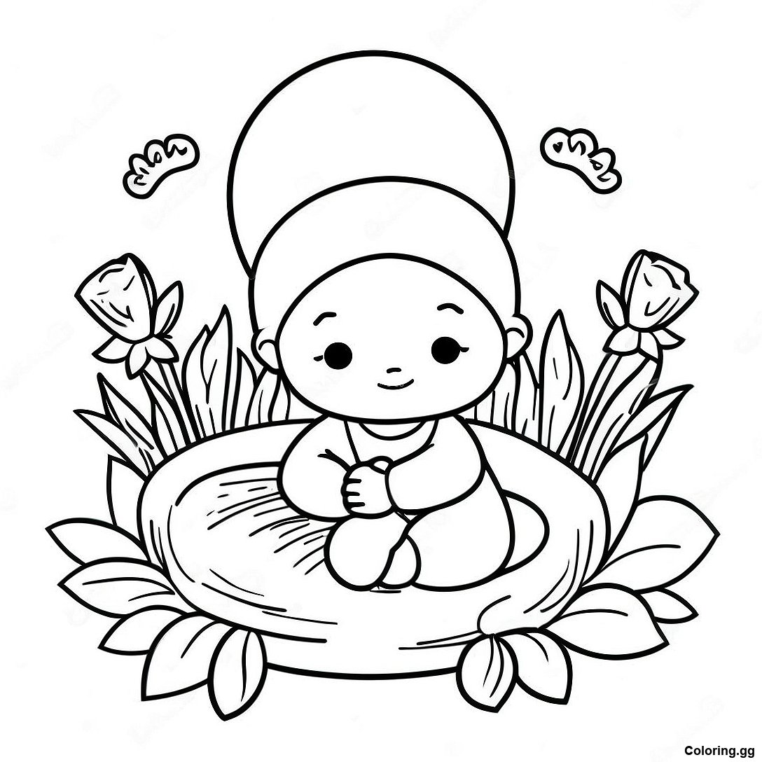 꽃들에 둘러싸인 아기 모세 색칠 공부 페이지