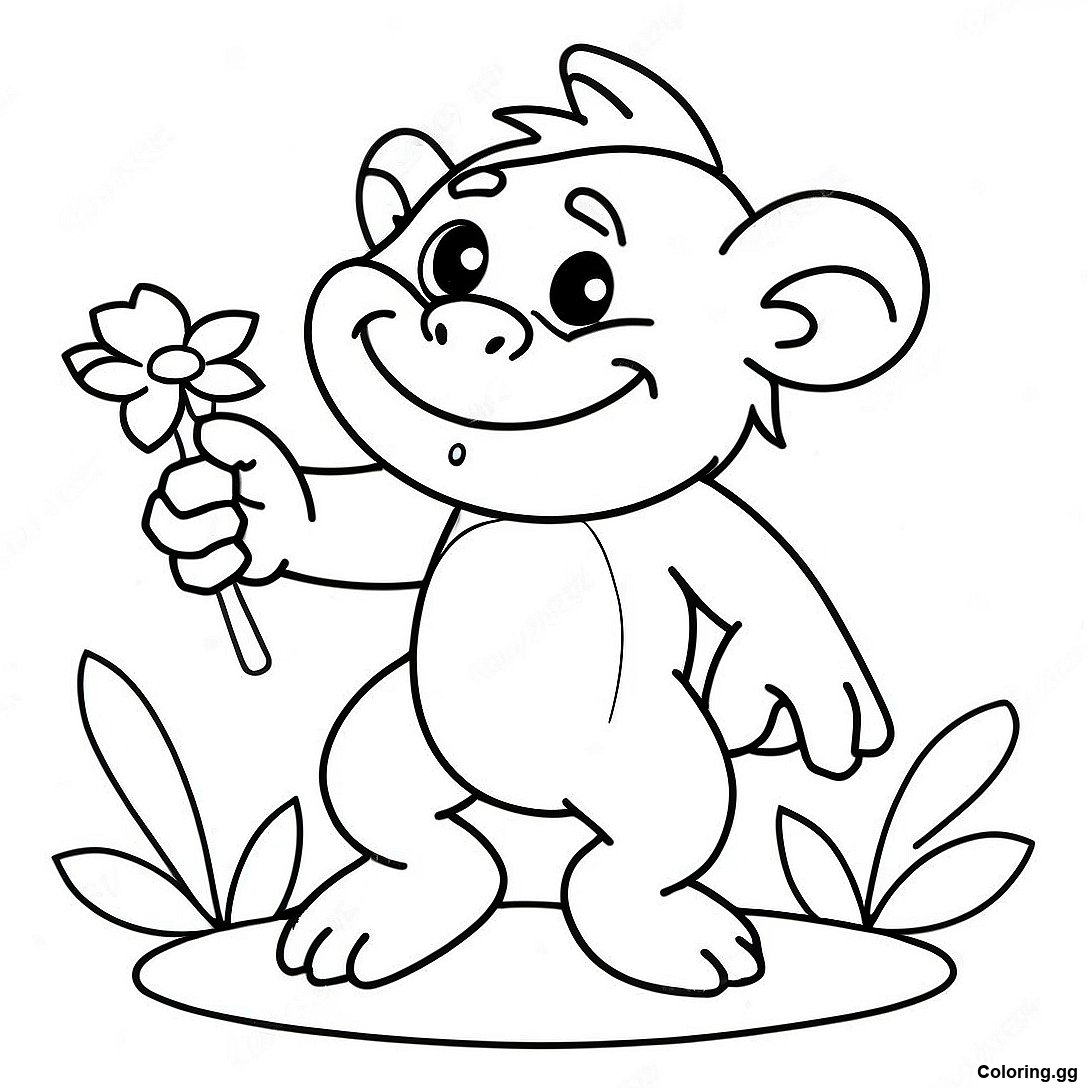꽃과 함께 노는 장난꾸러기 트롤 색칠 공부 페이지의 인쇄 가능한 PDF 다운로드