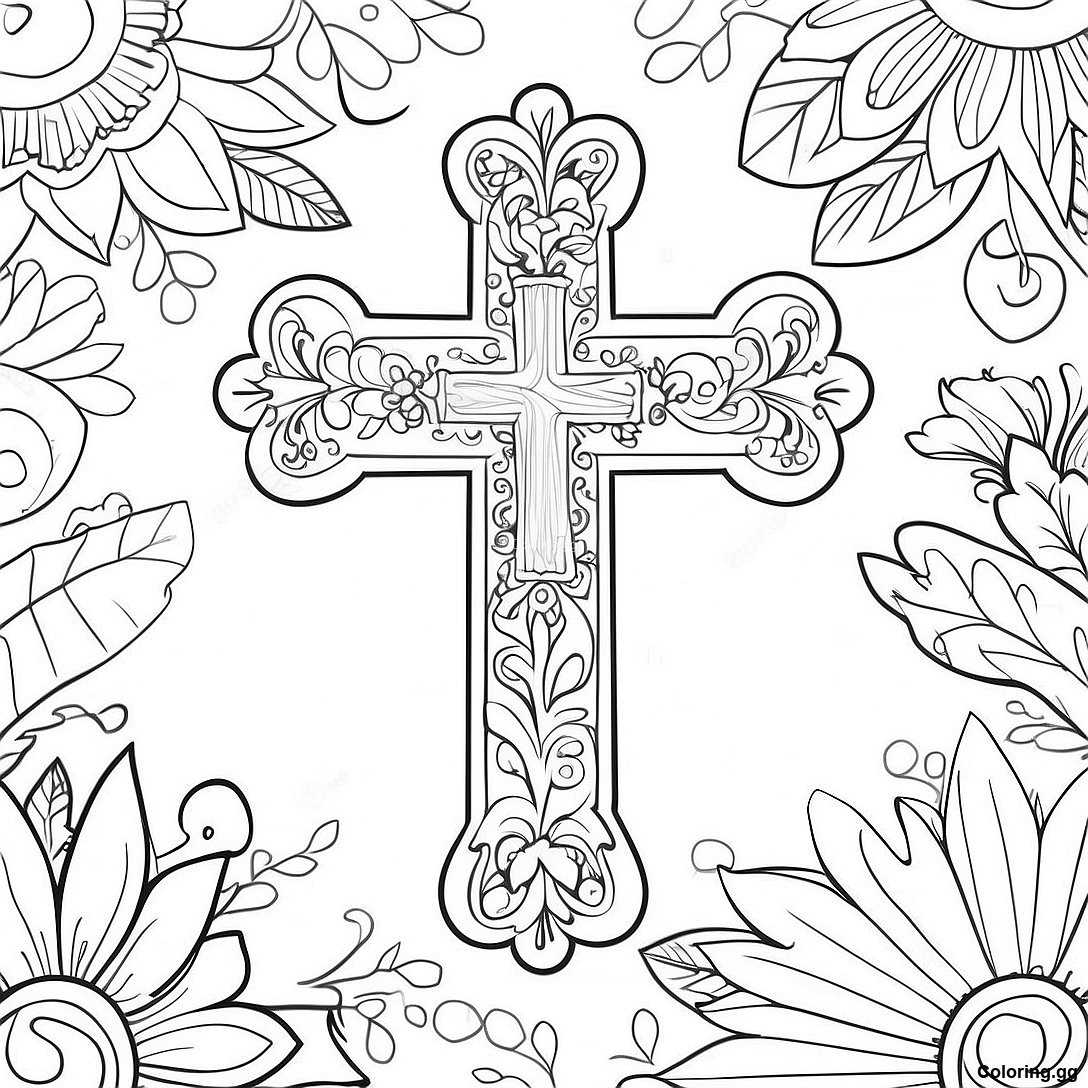 꽃이 있는 다채로운 십자가 색칠 공부의 인쇄 가능한 PDF 다운로드