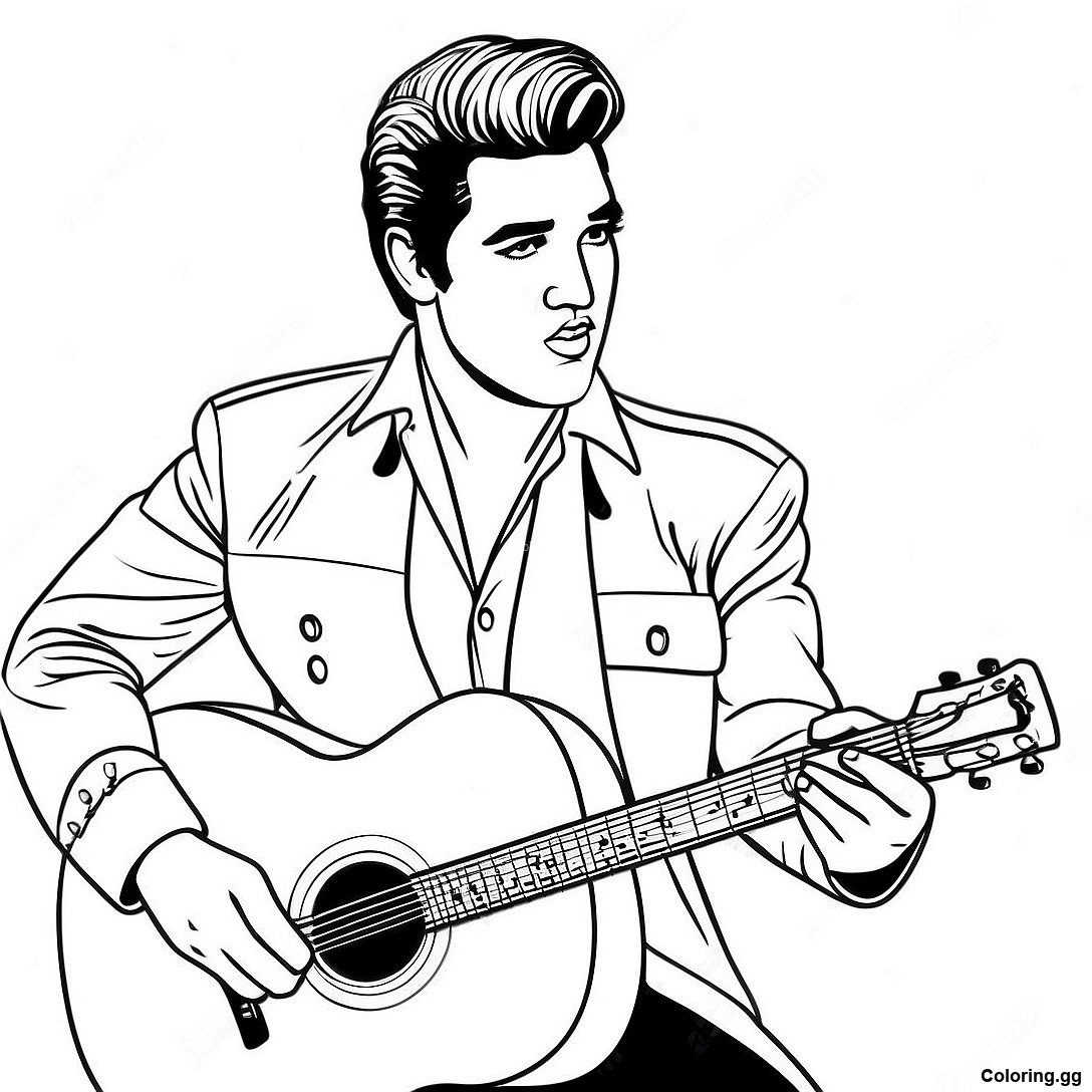 기타를 연주하는 엘비스 색칠 공부