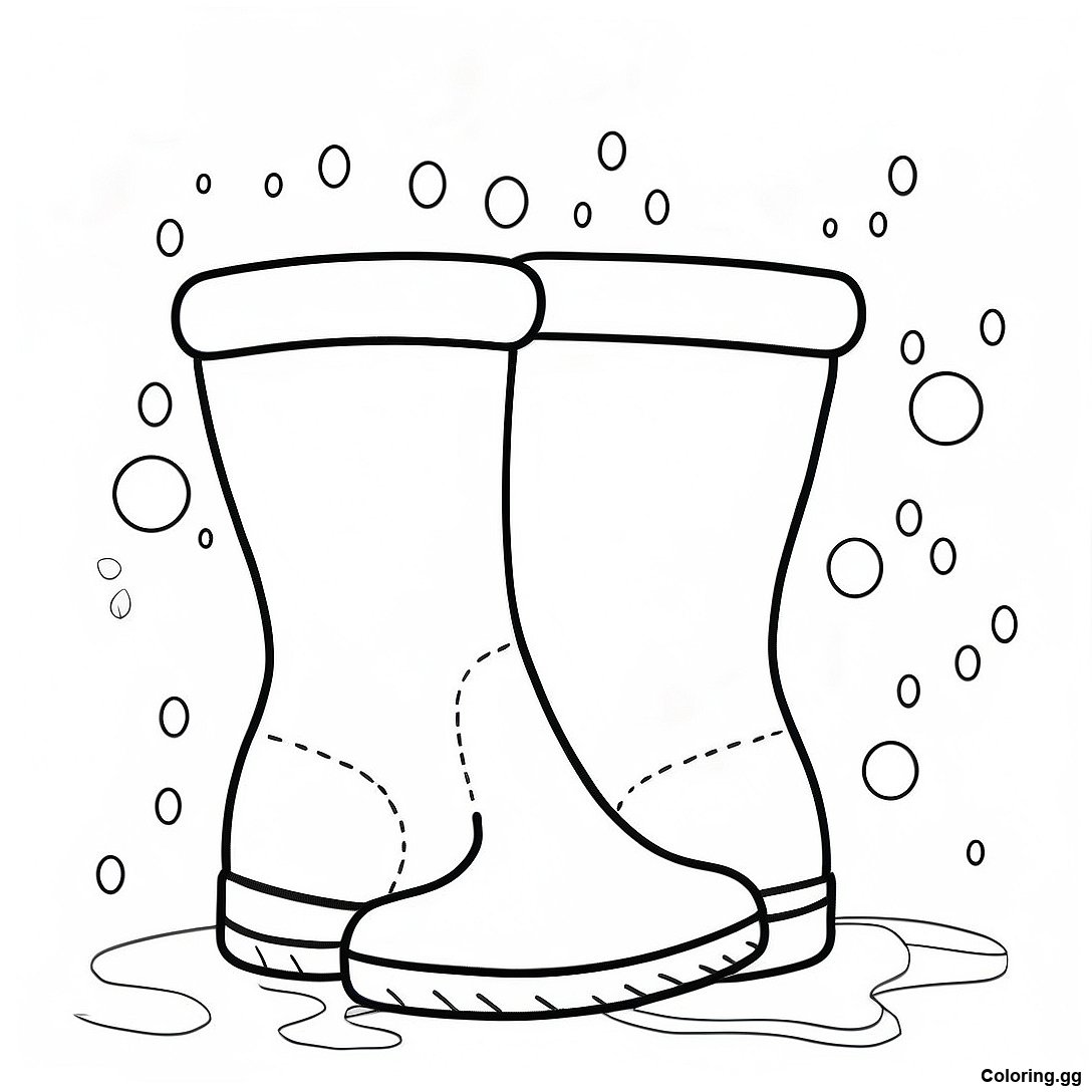 귀여운 비 오는 날 부츠 색칠 공부의 인쇄 가능한 PDF 다운로드