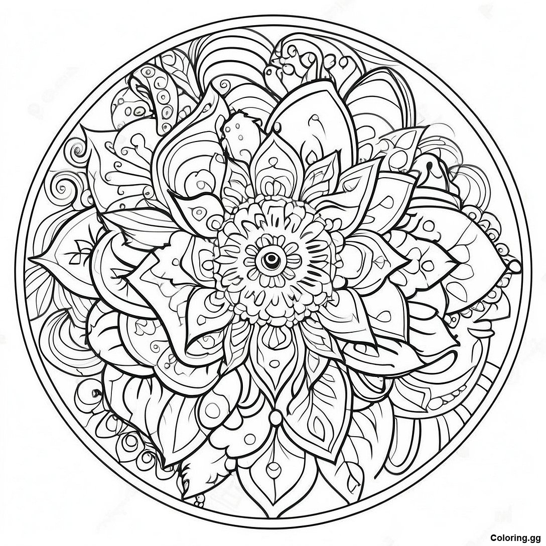 귀여운 동물 만다라 색칠 공부 페이지의 인쇄 가능한 PDF 다운로드