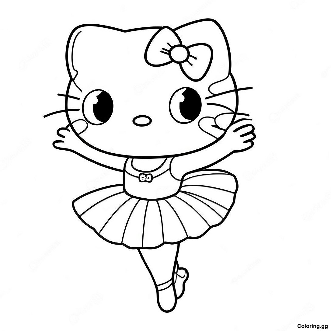 귀여운 헬로키티 발레리나 색칠 공부 페이지의 인쇄 가능한 PDF 다운로드