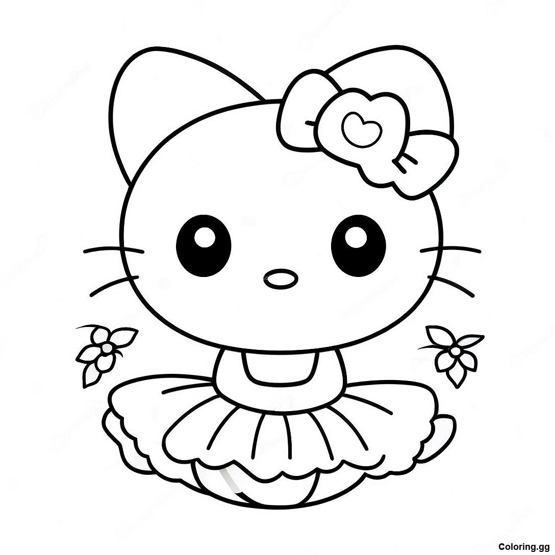 귀여운 헬로키티 튜튜 색칠 공부의 인쇄 가능한 PDF 다운로드