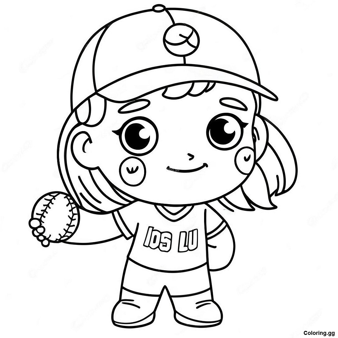 귀여운 소프트볼 선수 색칠 공부의 인쇄 가능한 PDF 다운로드