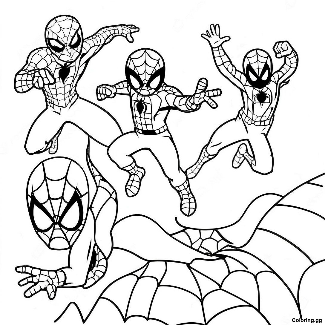 장난기 가득한 스파이더맨과 친구들 색칠 공부의 인쇄 가능한 PDF 다운로드