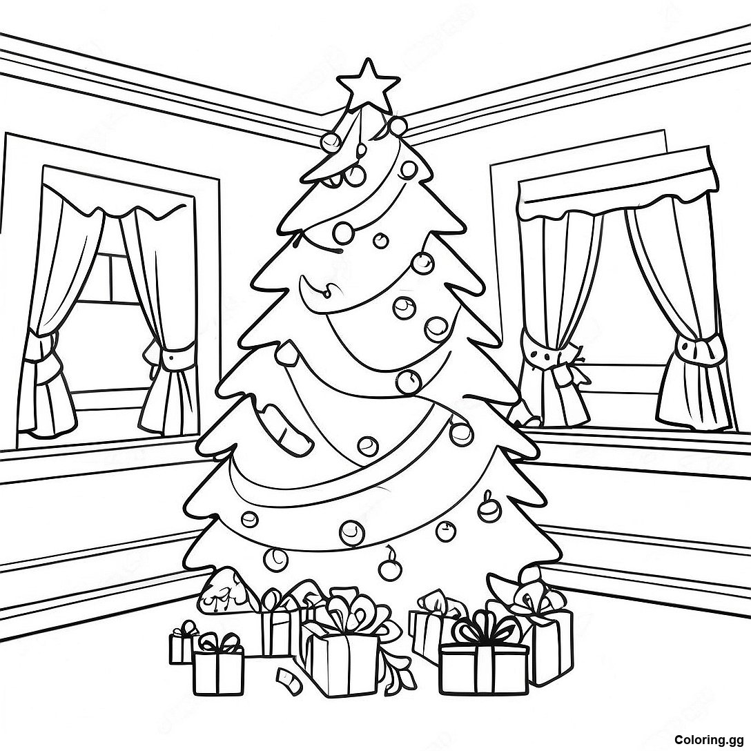 장식된 크리스마스 트리 색칠 공부의 인쇄 가능한 PDF 다운로드