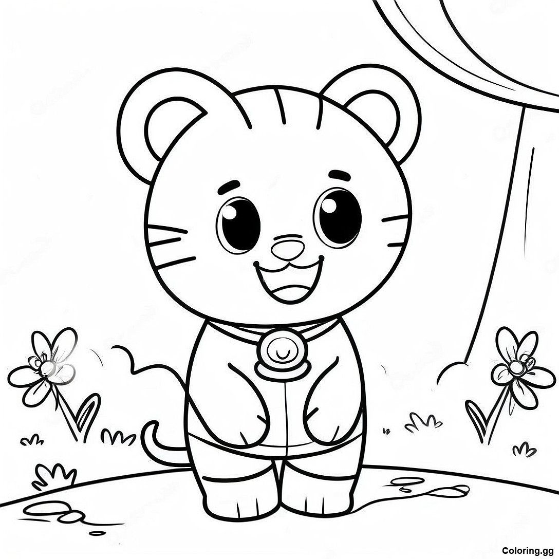 큰 미소를 짓고 있는 다니엘 타이거 색칠 공부의 인쇄 가능한 PDF 다운로드