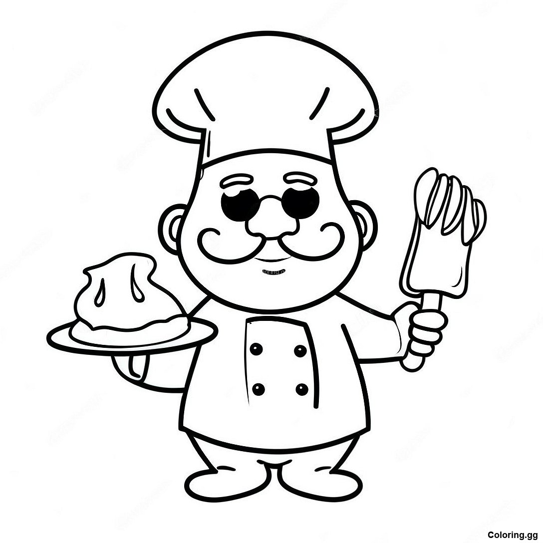 큰 모자를 쓴 재미있는 셰프 색칠 공부 페이지의 인쇄 가능한 PDF 다운로드