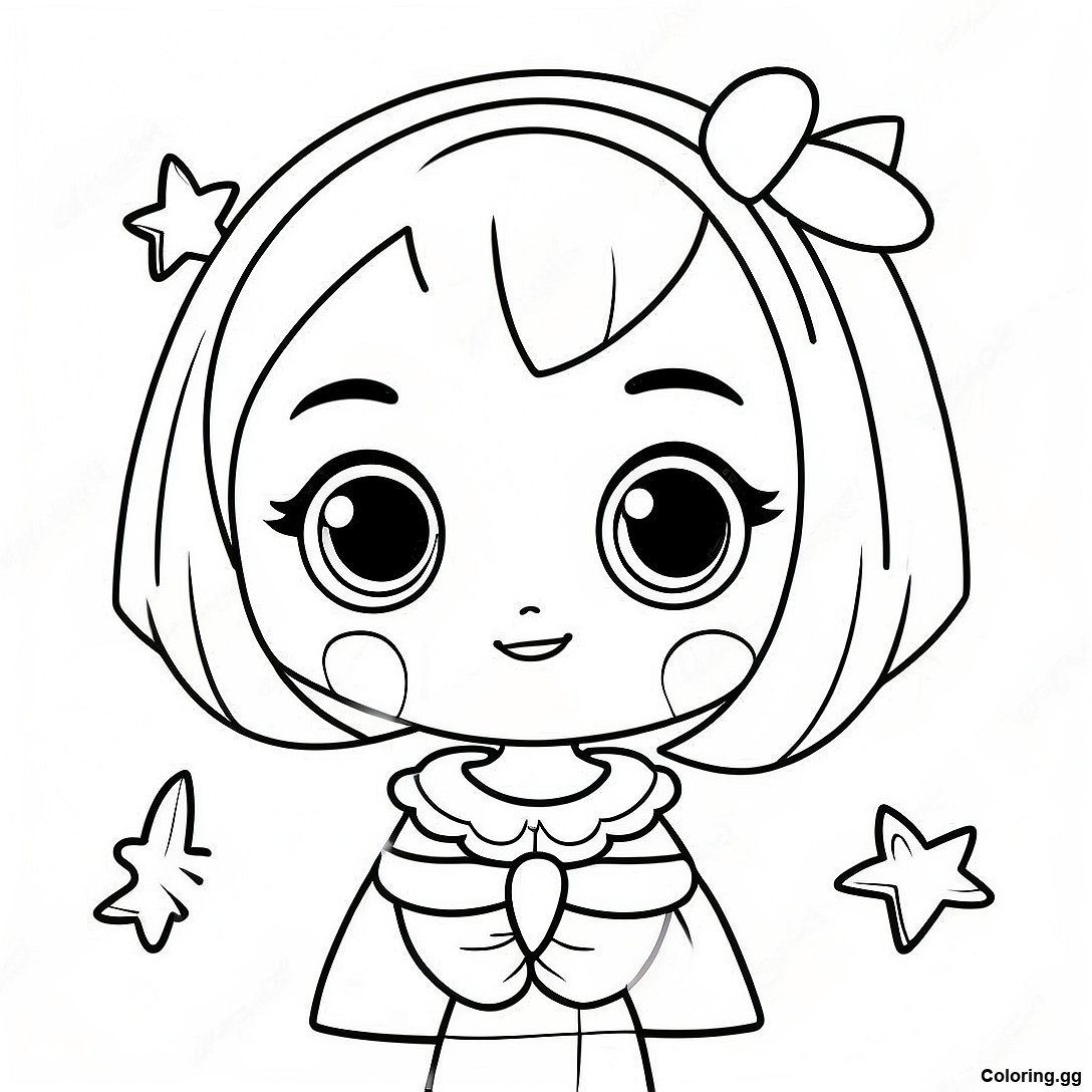 큰 눈을 가진 카와이 애니메이션 소녀 색칠 공부
