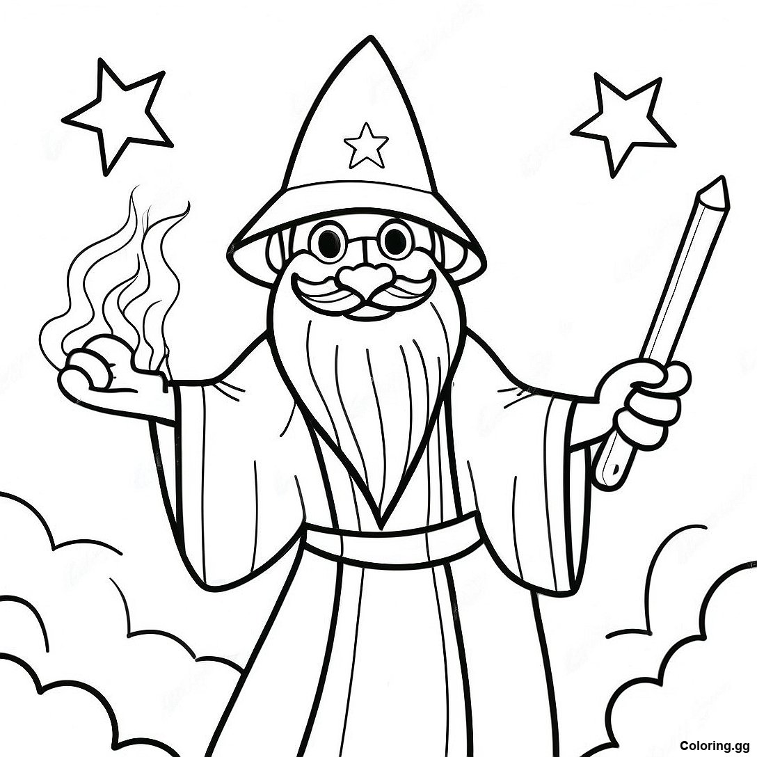 마법의 마법사 색칠 공부 페이지의 인쇄 가능한 PDF 다운로드