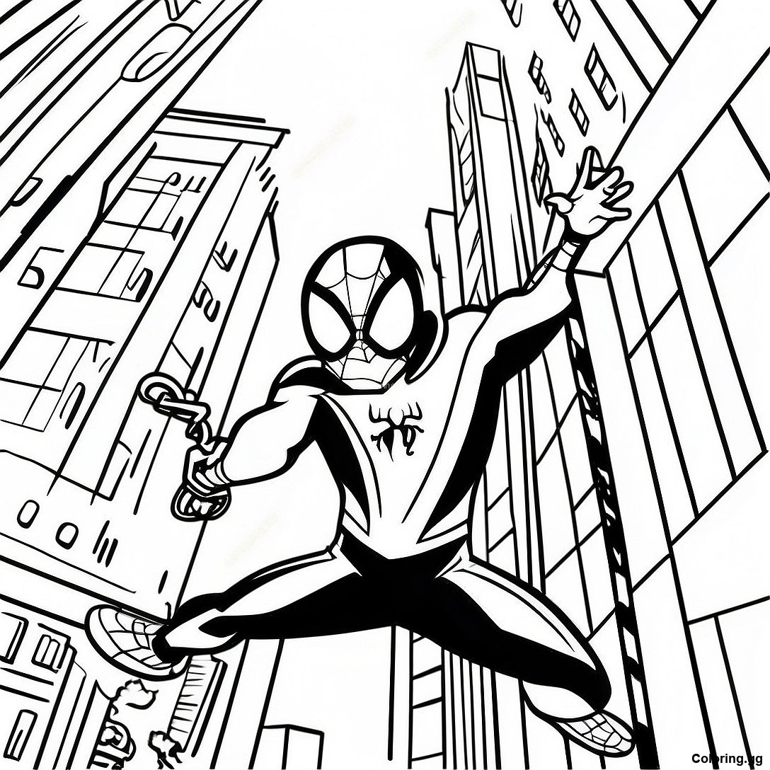 블랙 수트 스파이더맨 도시를 가로지르는 색칠 공부