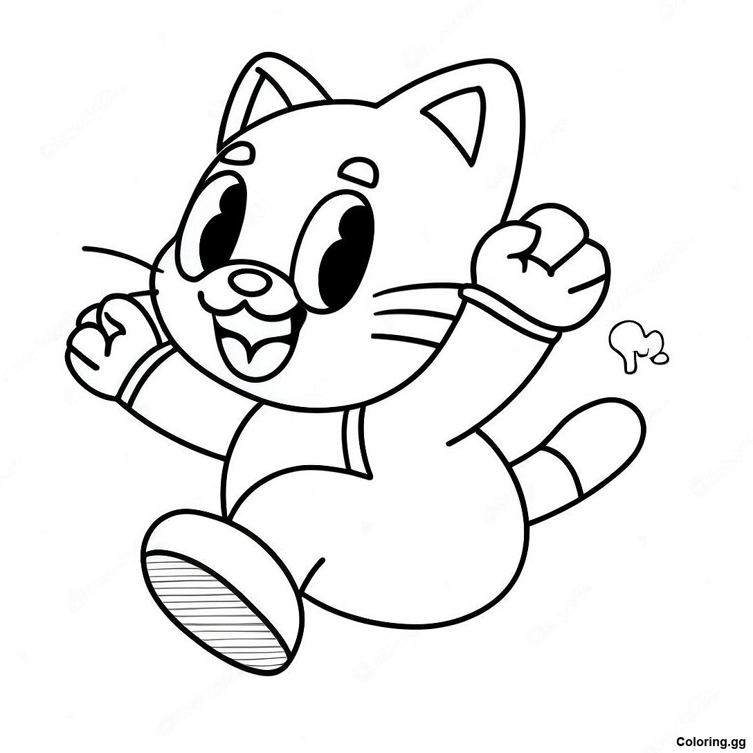 모험적인 고양이 마리오 점프 색칠 공부 페이지의 인쇄 가능한 PDF 다운로드