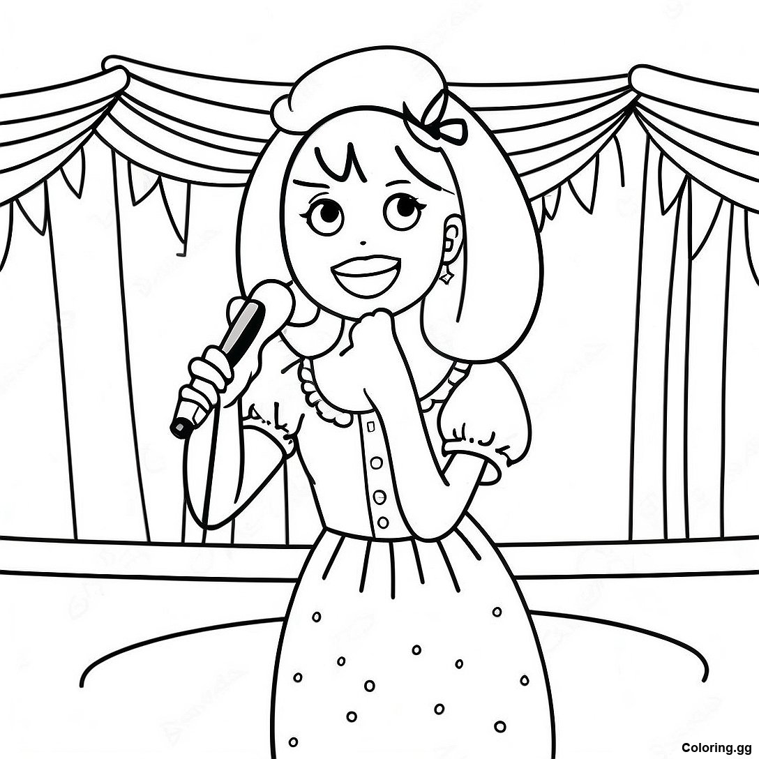 무대에서 노래하는 멜라니 마르티네즈 색칠 공부 페이지의 인쇄 가능한 PDF 다운로드