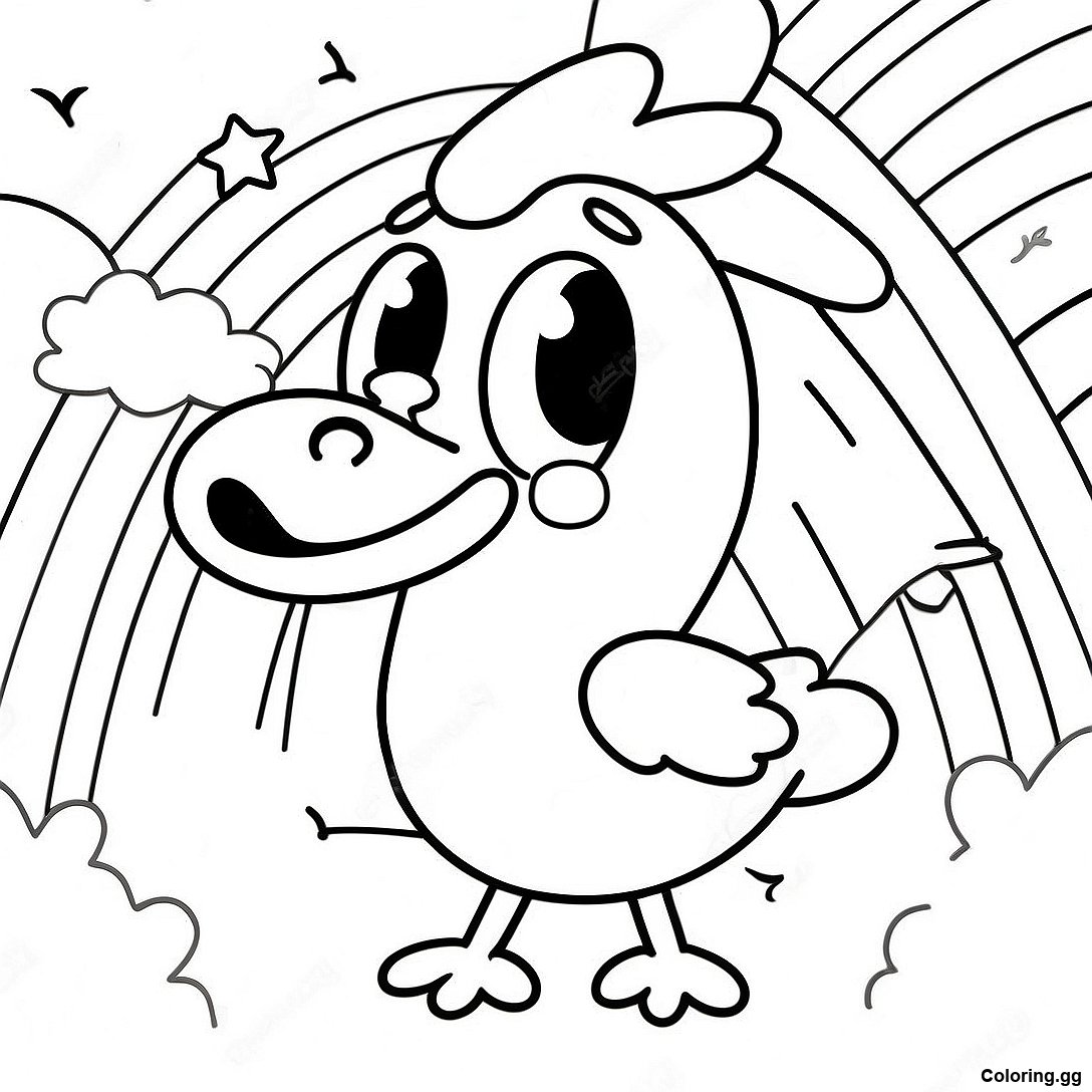 무지개 배경의 치카 색칠 공부의 인쇄 가능한 PDF 다운로드