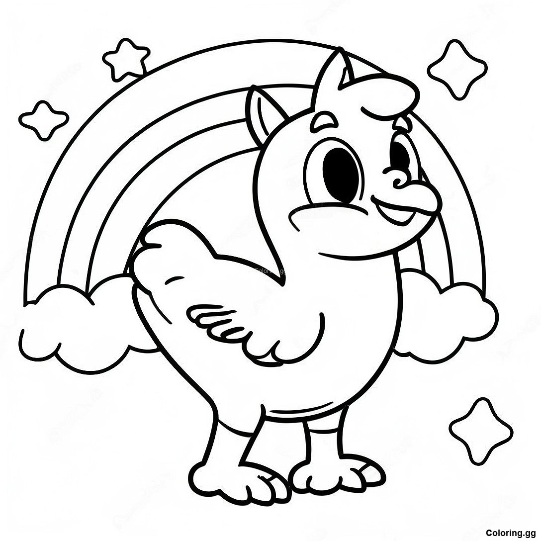 무지개 배경의 치카 색칠 공부의 인쇄 가능한 PDF 다운로드