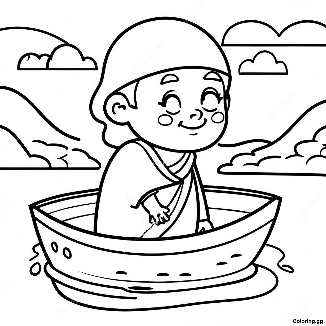 나일 강과 함께하는 아기 모세 색칠 공부 페이지의 인쇄 가능한 PDF 다운로드