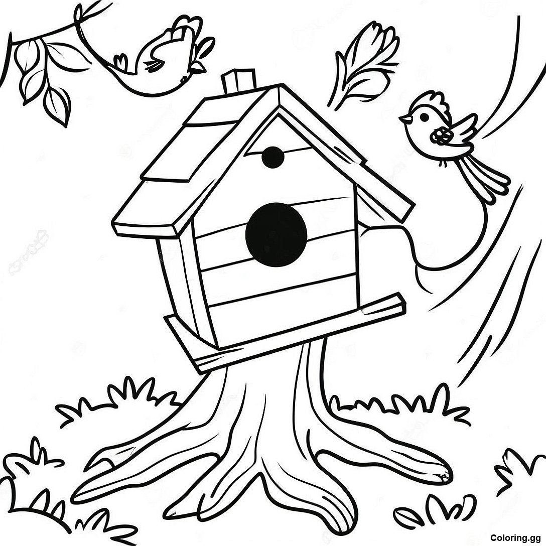 나무에 있는 귀여운 새집 색칠 공부의 인쇄 가능한 PDF 다운로드