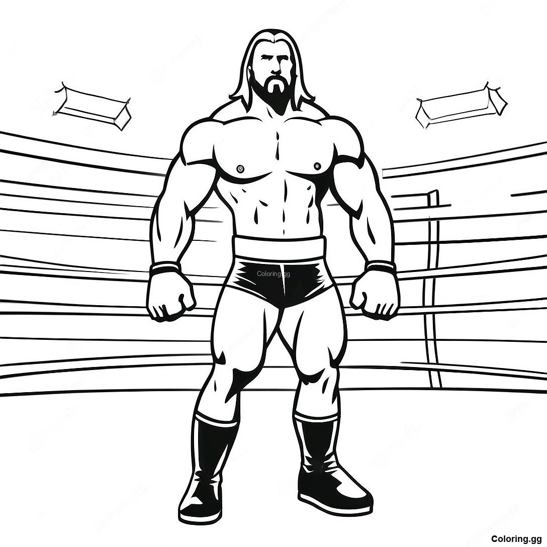 링 안의 3d 트리플 H 색칠 공부 페이지