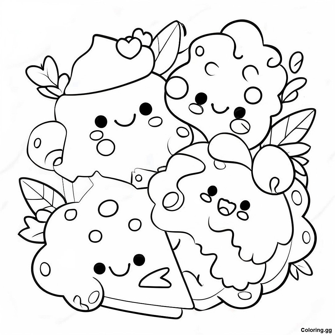 사랑스러운 넘놈 음식 친구들 색칠 공부 페이지의 인쇄 가능한 PDF 다운로드