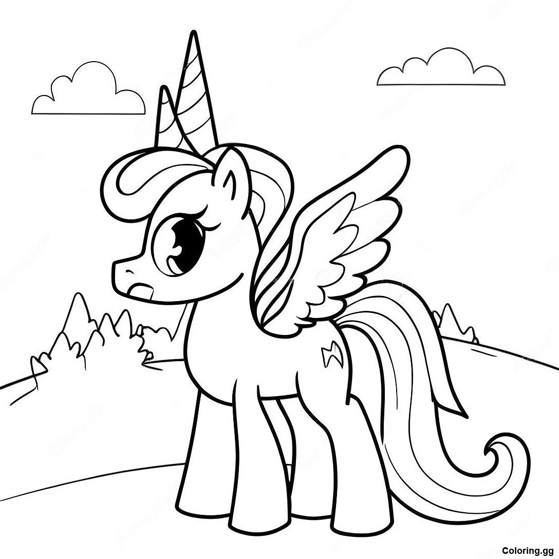 반짝이는 갈기를 가진 셀레스티아 공주 색칠 공부 페이지