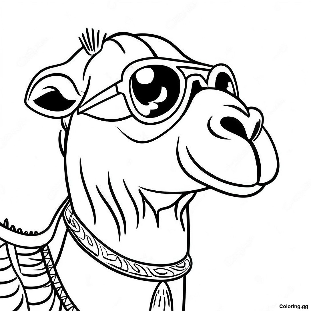 선글라스를 쓴 재미있는 낙타 색칠 공부의 인쇄 가능한 PDF 다운로드