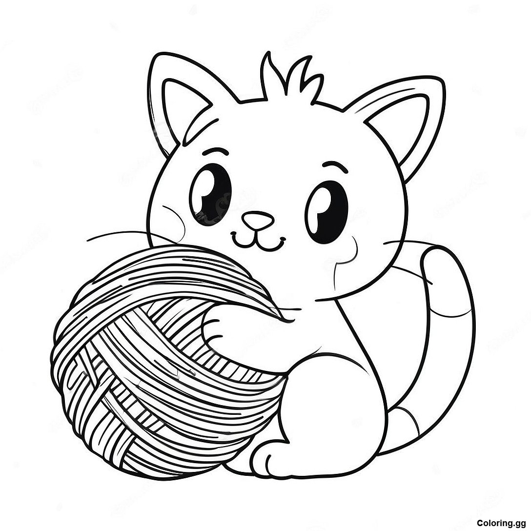 실없는 고양이와 털실 공 색칠 공부의 인쇄 가능한 PDF 다운로드