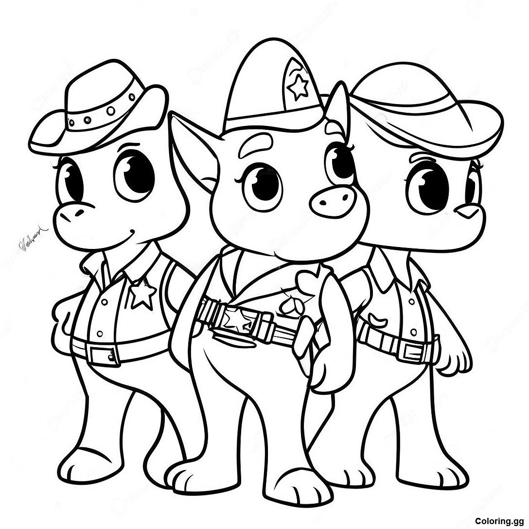 셰리프 캘리와 친구들 색칠 공부 페이지의 인쇄 가능한 PDF 다운로드
