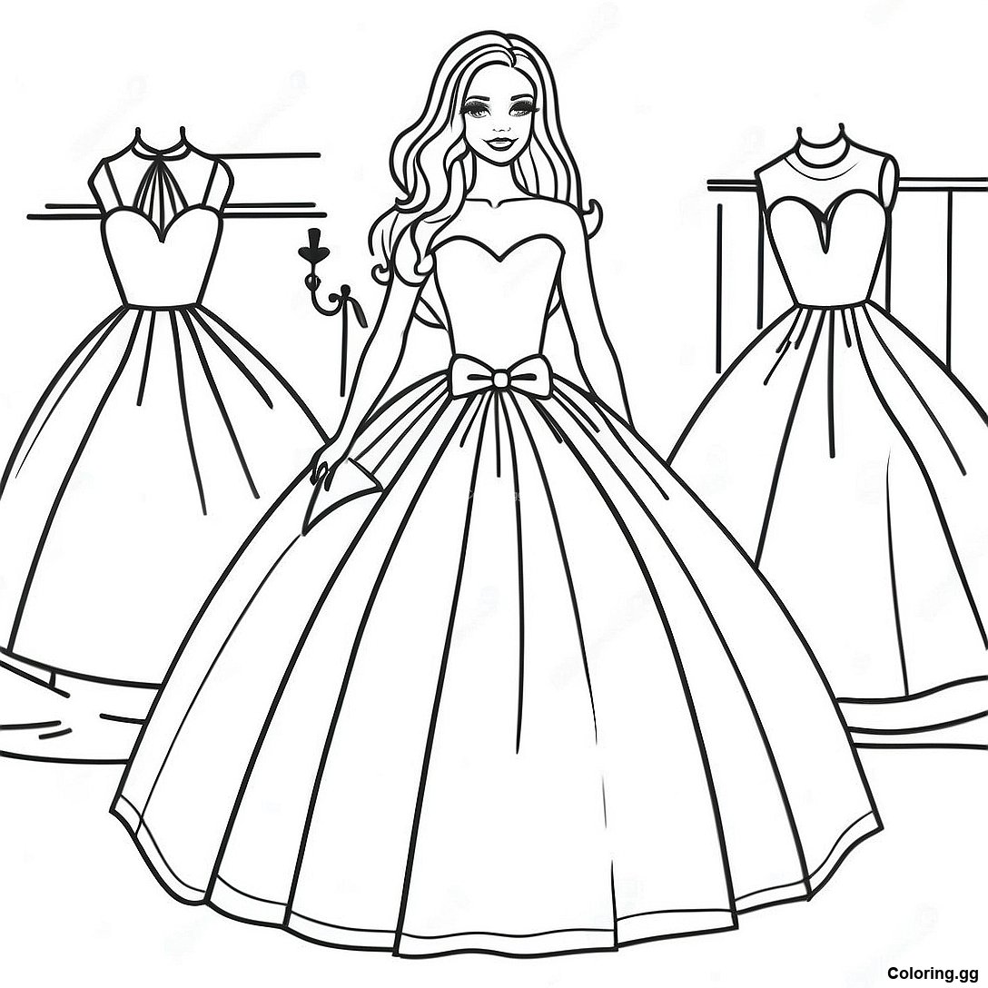 우아한 바비 드레스 색칠 공부 페이지의 인쇄 가능한 PDF 다운로드