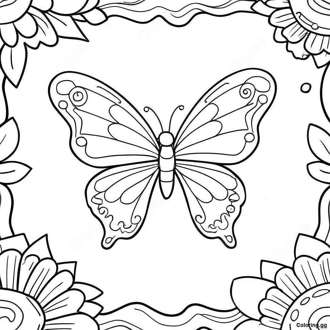 우아한 비행 중인 꽃 나비 색칠 공부의 인쇄 가능한 PDF 다운로드