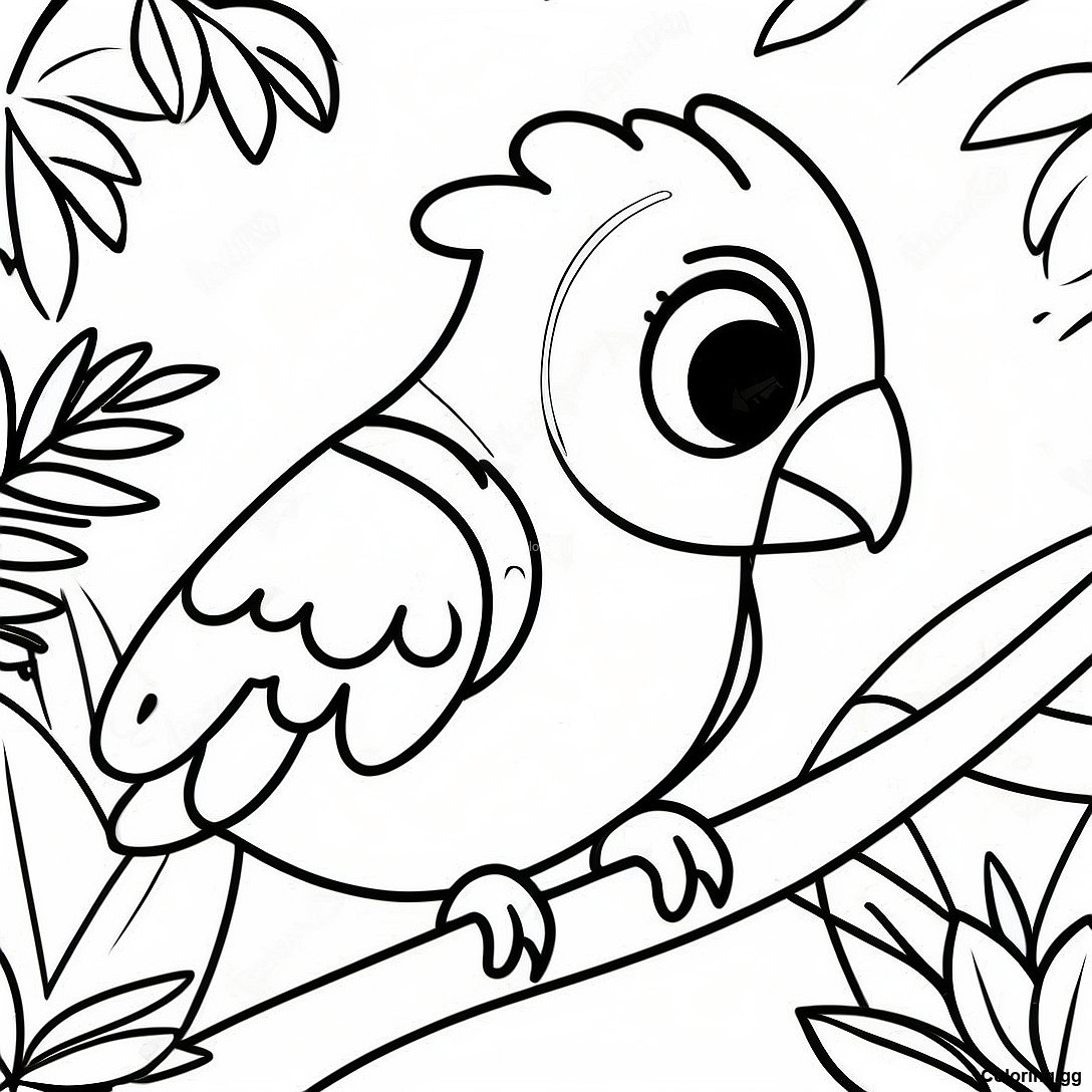 열대 정글의 자메이카 앵무새 색칠 공부 페이지의 인쇄 가능한 PDF 다운로드